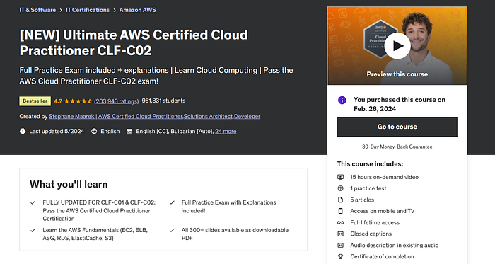- Ultimate AWS Certified Cloud Practitioner CLF-C02 (Udemy)