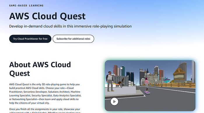 AWS Cloud Quest: Cloud Practitioner is a unique, gamified learning experience. It turns cloud learning into an adventure where users complete quests and solve puzzles to learn about AWS services.