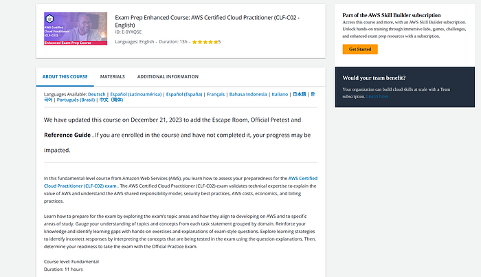 5. Exam Prep Enhanced Course: AWS Certified Cloud Practitioner (CLF-C02 — English) (AWS Skill Builder — Paid Free Trial)