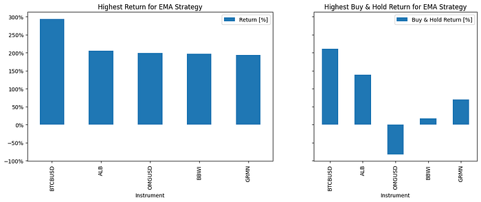 Here is an example of the results obtained for the instruments with the highest and lowest returns for EMA: