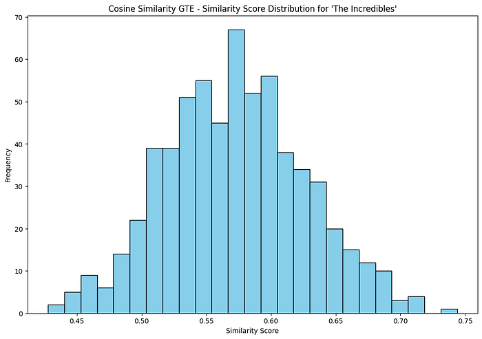 similar_movies_gte = find_similar_movies_sql(query_movie_title, threshold=0, return_n=631, distance_function=’<=>’, embedding_type=‘gte’)