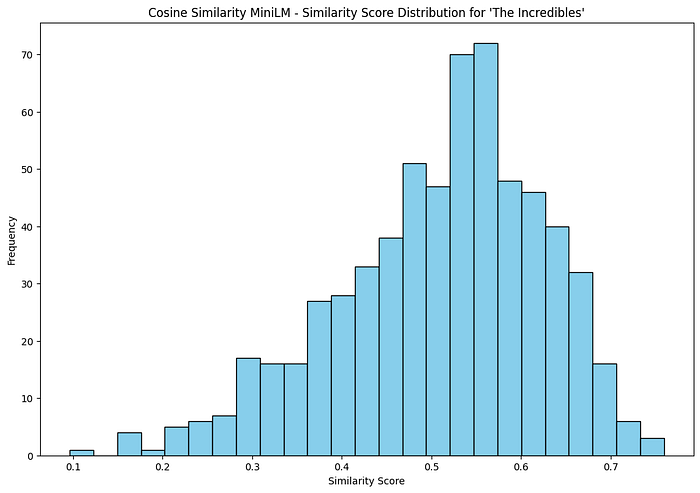 similar_movies_MiniLM = find_similar_movies_sql(query_movie_title, threshold=0, return_n=631, distance_function=’<=>’, embedding_type=‘MiniLM’)